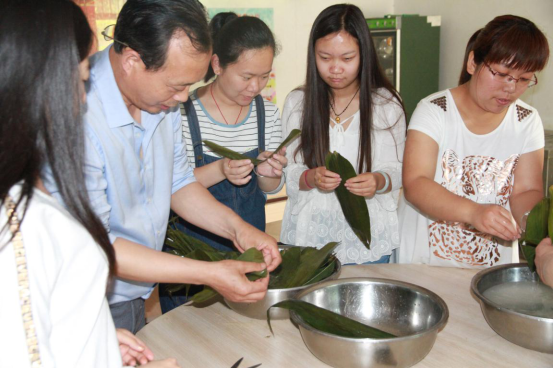 后勤員工們到達食堂后,將已經(jīng)泡好的糯米,粽葉,棉線一一擺放整齊,然后開始包粽子。許多年輕的職工是第一次包粽子,有經(jīng)驗的領(lǐng)導就進行現(xiàn)場示范。大家認真學習,很快就基本掌握了包粽子技巧。員工表示,通過此次活動不僅學到了本事,也懂得了食物的來之不易,雖然自己包的粽子不是很漂亮,但是勞動的喜悅難以言表。并希望以后單位多多舉行這樣的活動。